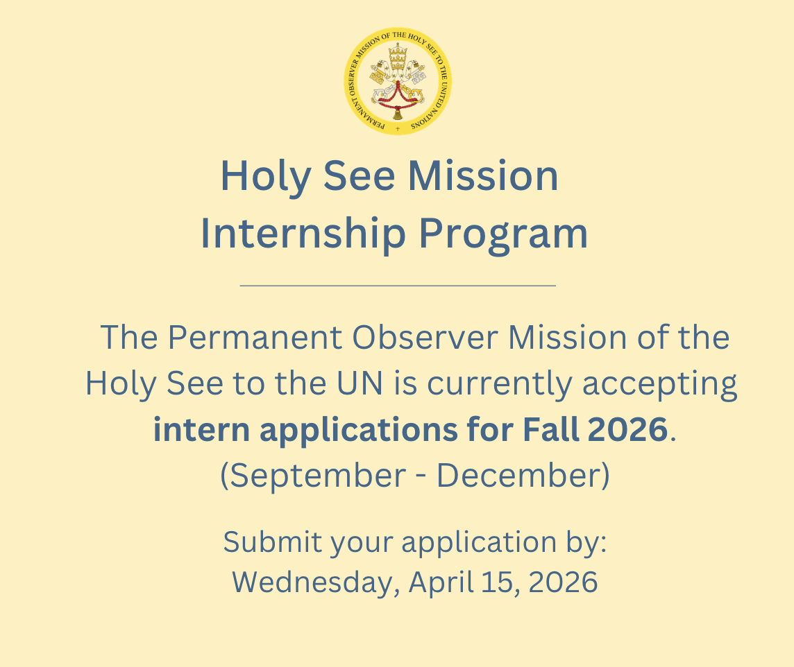 Briefly explain your background, how you learned about the internship, and why you are interested in serving as an intern for the Holy See’s Permanent Observer Mission to the United Nations.