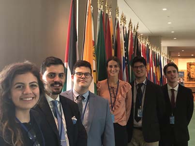 (The six interns have a photo during their training before the Holy See's flag within the United Nations. From left to right: Marisa Martinez, Juan Francisco Padin, Pedro Perez, Jean Maloney, David Lewandowski, Thomas Murphy. Francesco Terruggi is pictured in the photo at the top, standing, second from the right).